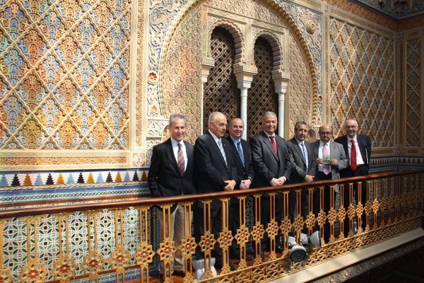 En 2011, su nieto, Rafiq Al-Husseini, llegó a Murcia para participar en un foro sobre el agua. Traía una copia de aquella fotografía antigua y quiso repetirla en el mismo lugar. Aquí está, en la página 15 del número cero, sonriendo en la balconada del Patio Árabe. Dos imágenes, dos momentos, un mismo sitio.